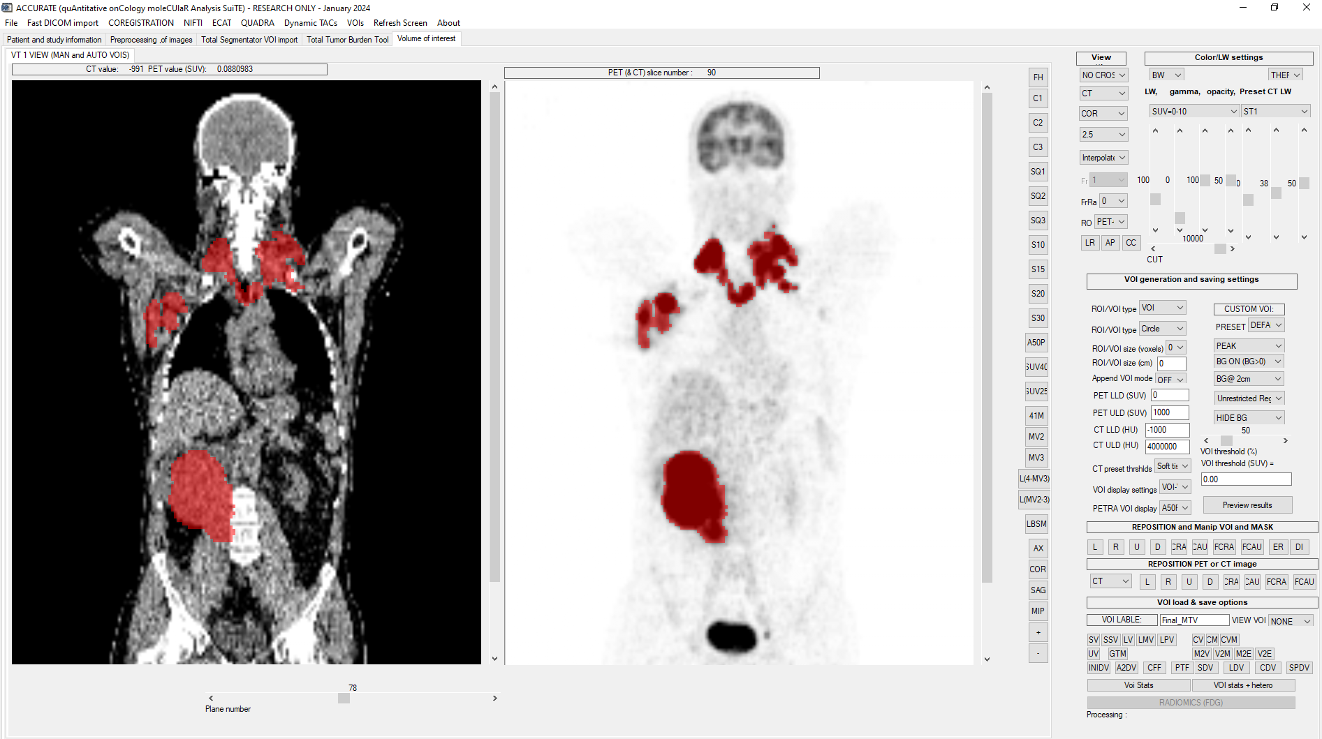 The ACCURATE tool may also be used for Metabolic Tumor Volume (MTV) analyses, where the tool already makes a preselection of the total tumor burden.